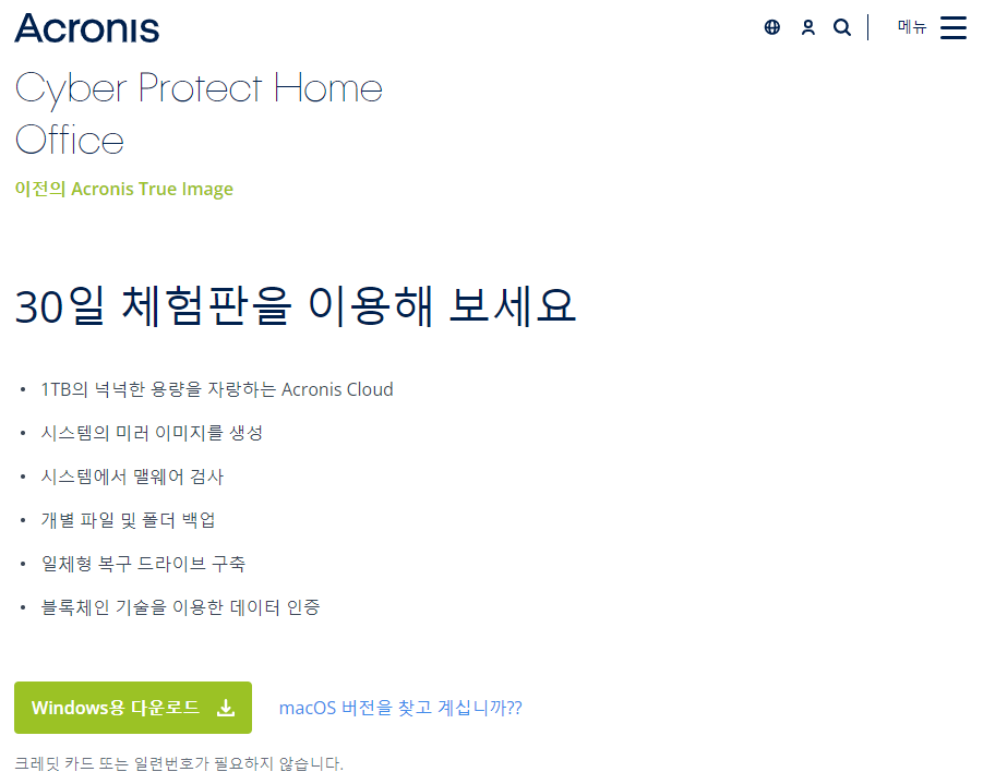 Acronis Cyber Protect Home Office (이전의 Acronis True Image) - 30일 무료 평가판 - 다운로드