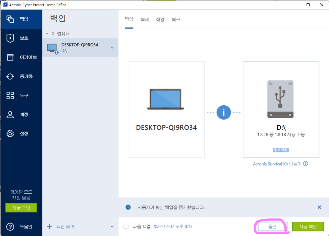 아크로니스 Cyber Protect Home Office 사용기 본문