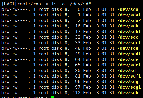 [RAC1|oracle:/home/oracle]> ls -al /dev/oracleafd/disks