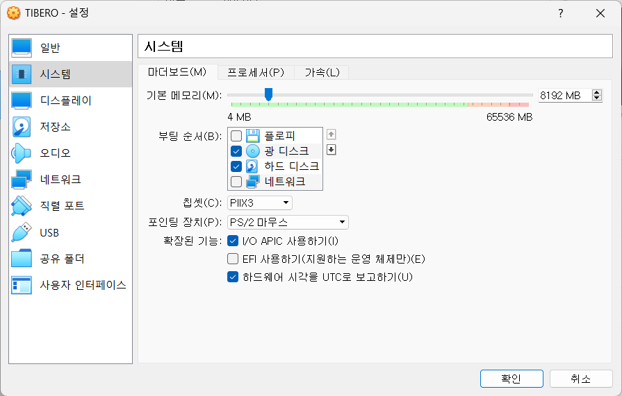 2. 세부 설정 (수정한 것만 캡쳐함)