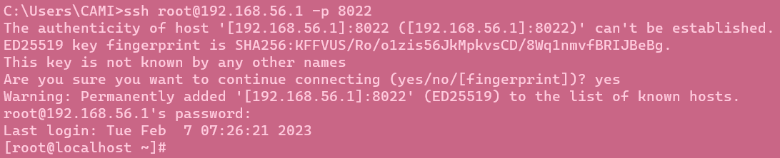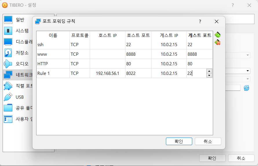 로컬 PC에서 192.168.56.1로 접근했을 때 10.0.2.15로 포워딩 되는 방식으로 연결 (포트포워딩)
