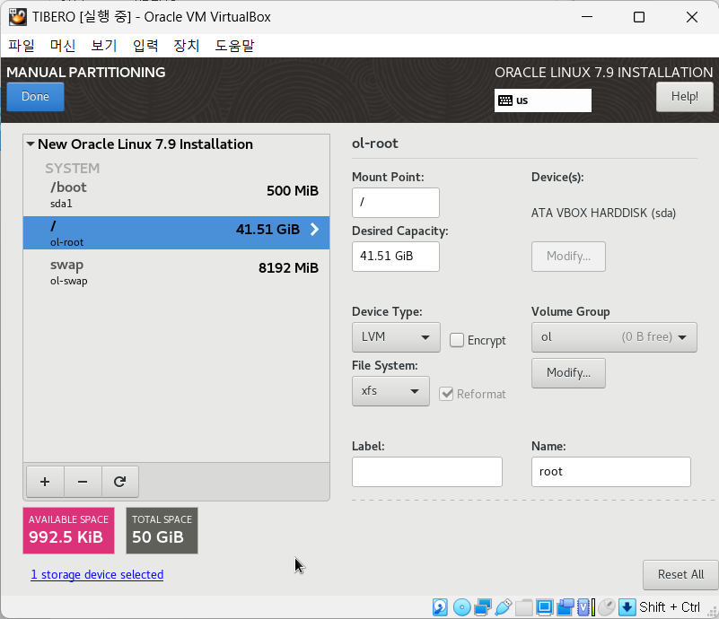 Oracle Linux 7.9 OS 설치 / VirtualBox / NAT SSH 접속 설정 본문
