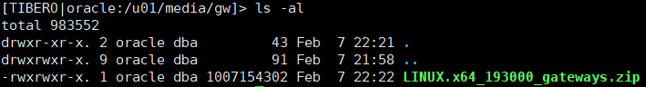 -rw-r--r--. 1 oracle dba 1007154302 Feb 7 22:22 LINUX.x64_193000_gateways.zip