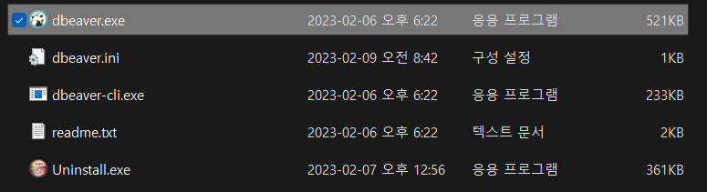 먼저 DBeaver 실행 파일이 있는 위치로 이동한다 / 나는 C:Program~어쩌구DBeaver