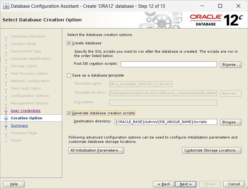 [ORA12|oracle:/home/oracle]> tail -50f /u01/app/oracle/cfgtoollogs/dbca/ORA12/trace.log_2023-02-13_06-46-44-AM