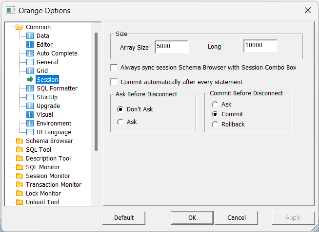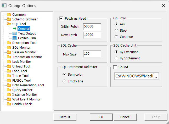 Tools -> Orange Options -> SQL Tool -> General -> Initial Fetch , Next Fetch 수정