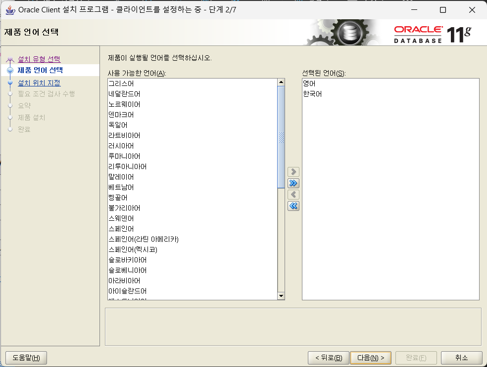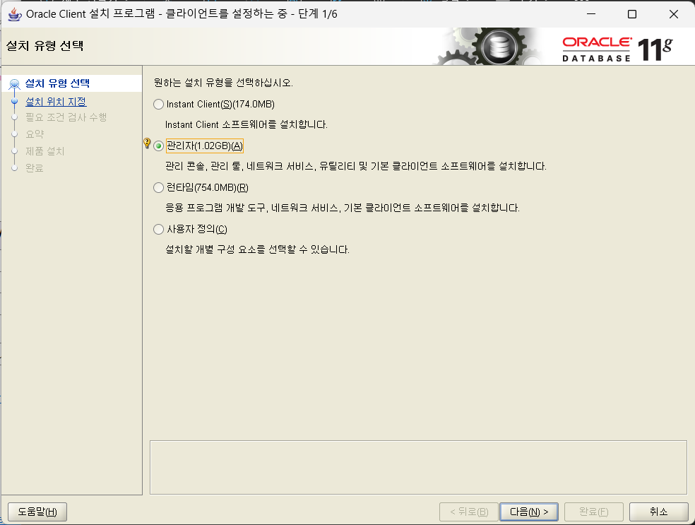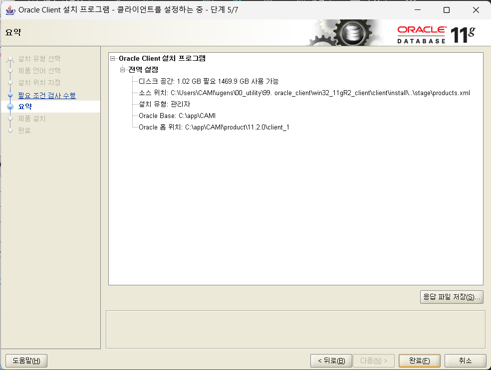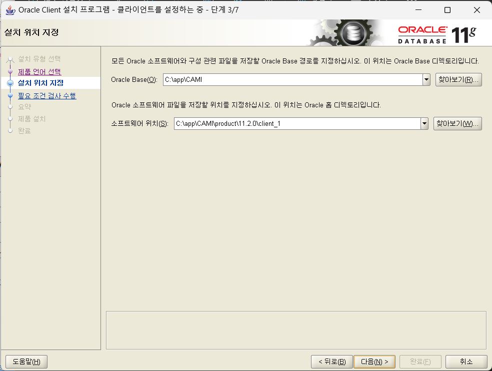 | 오라클 클라이언트 버전 | 11g 32bit |
