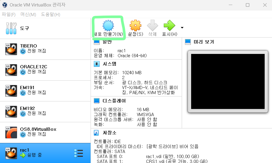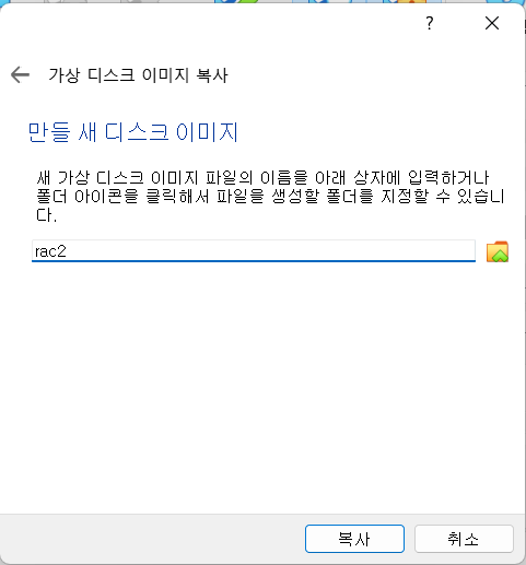 | RAC2 | rac2 | 10GB | 어댑터에 브리지 | 호스트 전용 어댑터 | RAC 복제 |