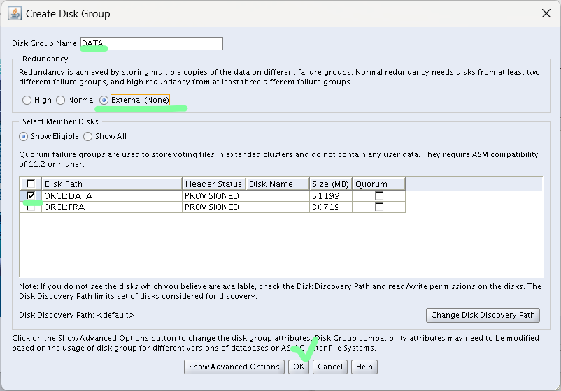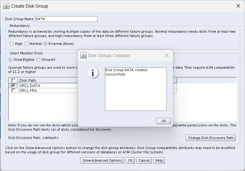 | FRA.VDI | 30GB | Fixed / Shareable | FAST RECOVERY AREA |