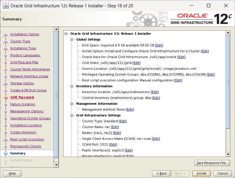 [ORACLE] Oracle Database 12c R1 RAC 설치 본문