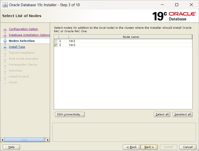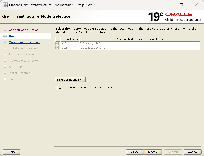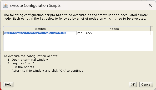 TARGET | rac1, rac2 | rac | 19.17.0.0.0 | FILESYSTEM | /u01/app/oracle/product/19c/db_1 | /u01/app/19c/grid |