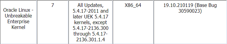--- 권고 : -> Oracle Linux 7.4 with Unbreakable Enterprise Kernal 5: 4.14.35-1818.1.6.el7uek.x86_64 or later