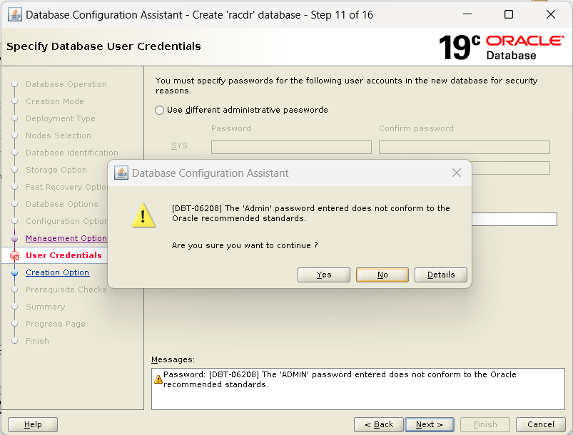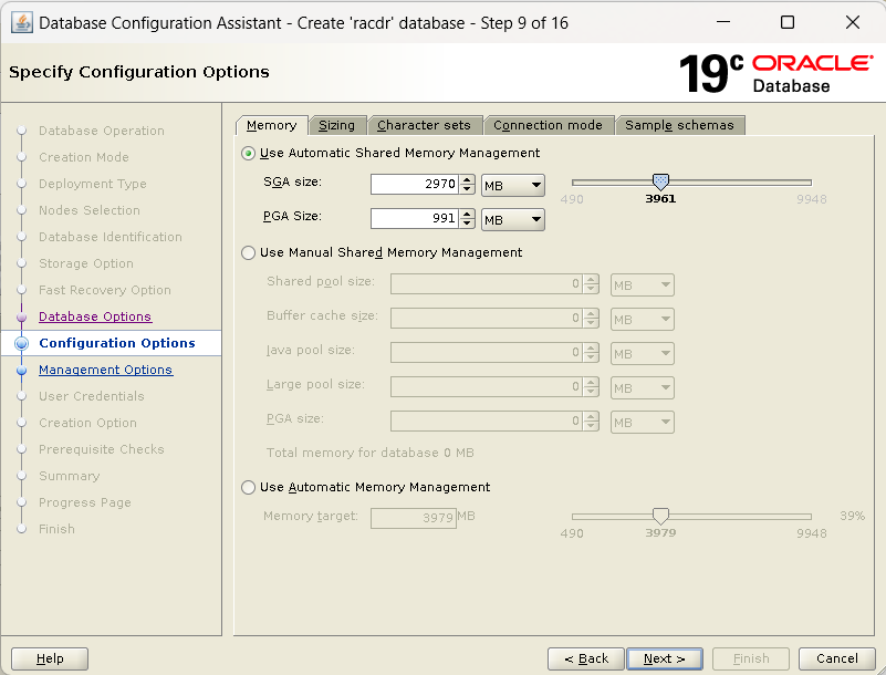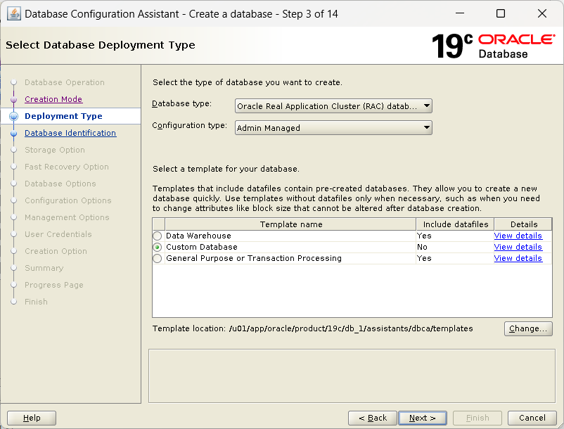 데이터베이스 저장 영역 속성 > 유형 : ASM / 위치 설정