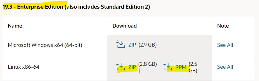- 엔진 : https://www.oracle.com/kr/database/technologies/oracle-database-software-downloads.html