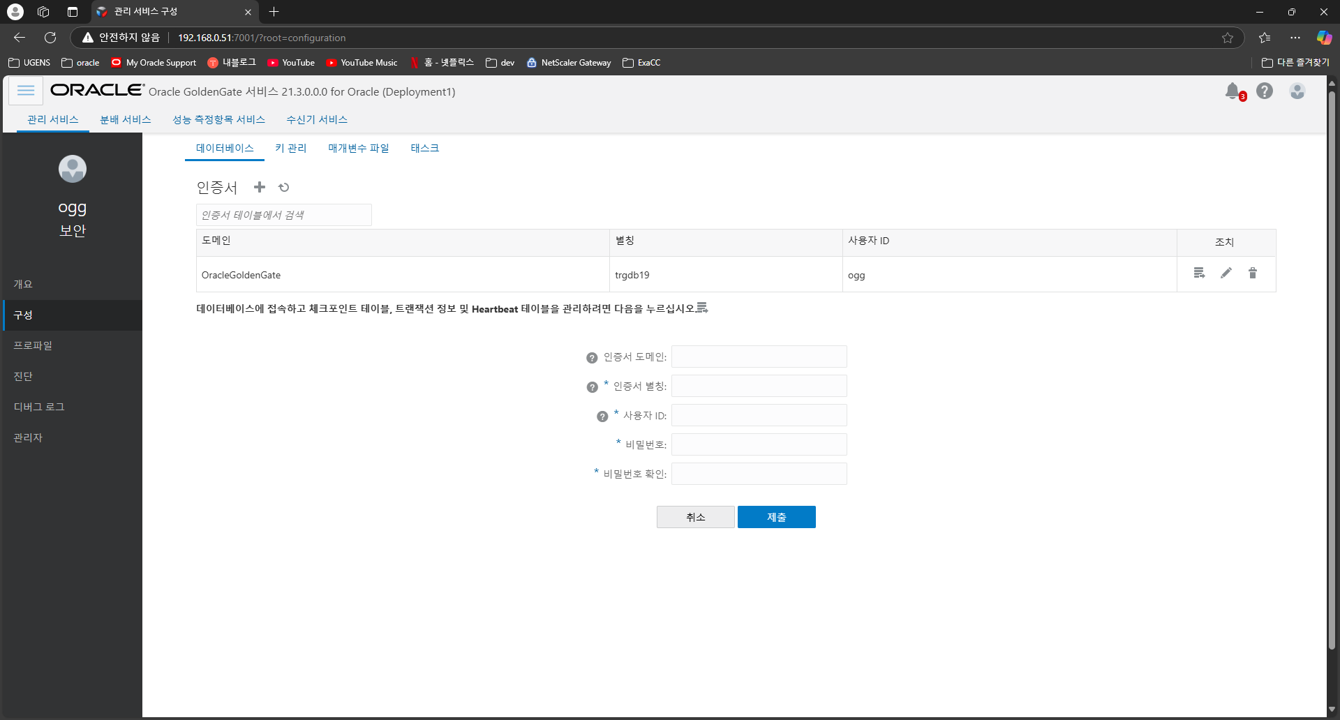 저 인증서옆에 + 누르고 인증서 내용 적고 제출해서 DB에 연결