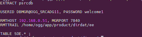 USERID dbmgr@OGG_SRCADG11, PASSWORD welcome1